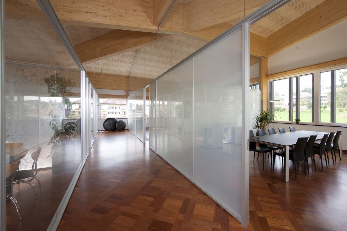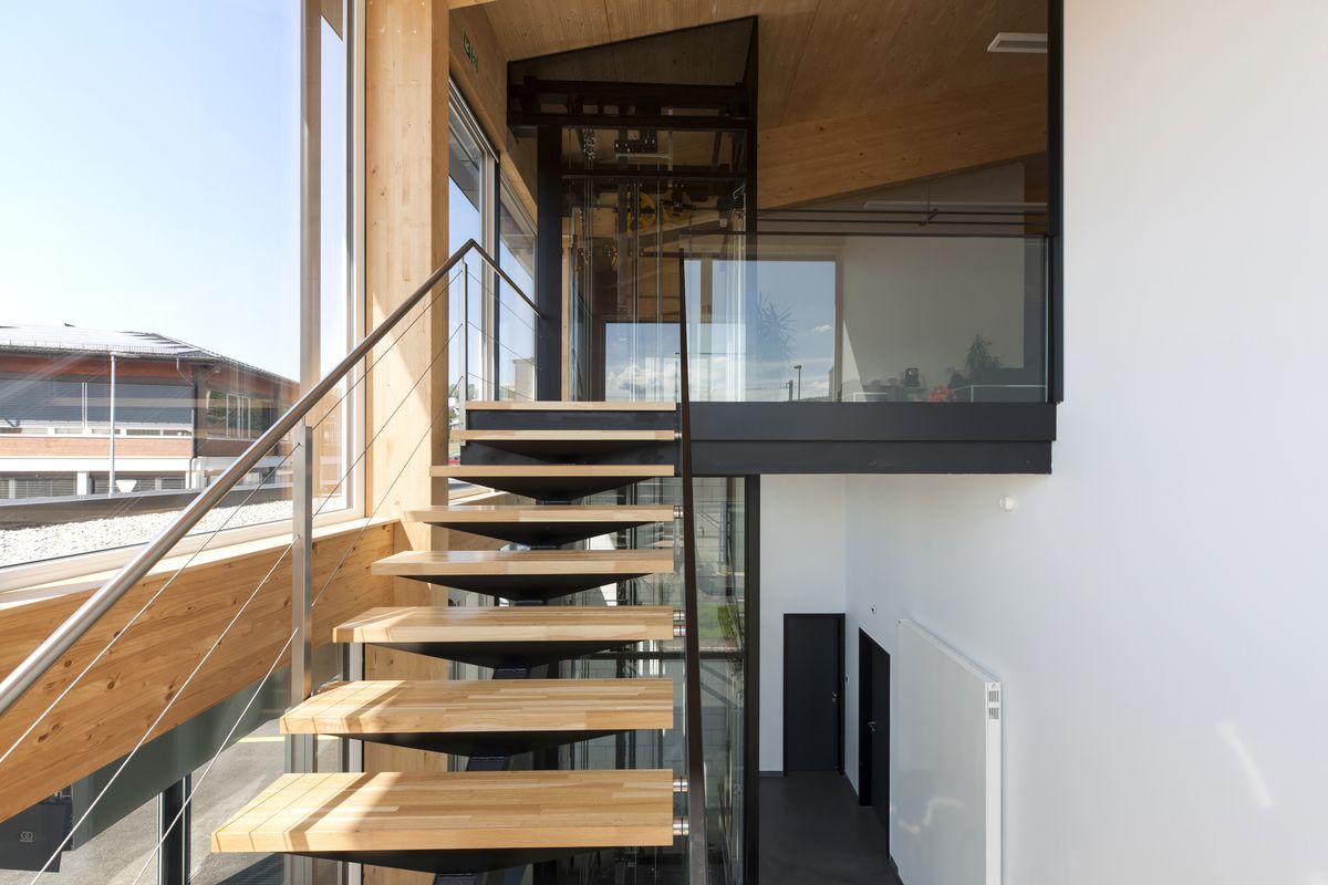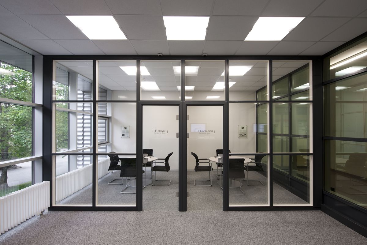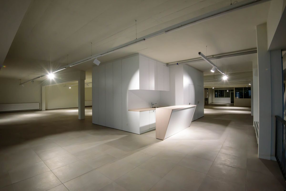 Aménagement de salles grises et création d’un niveau intermédiaire pour la cafétéria et les bureaux dans le bâtiment existant