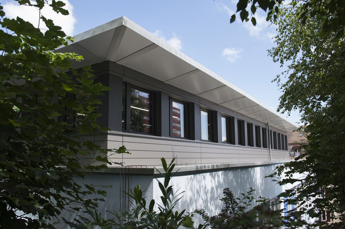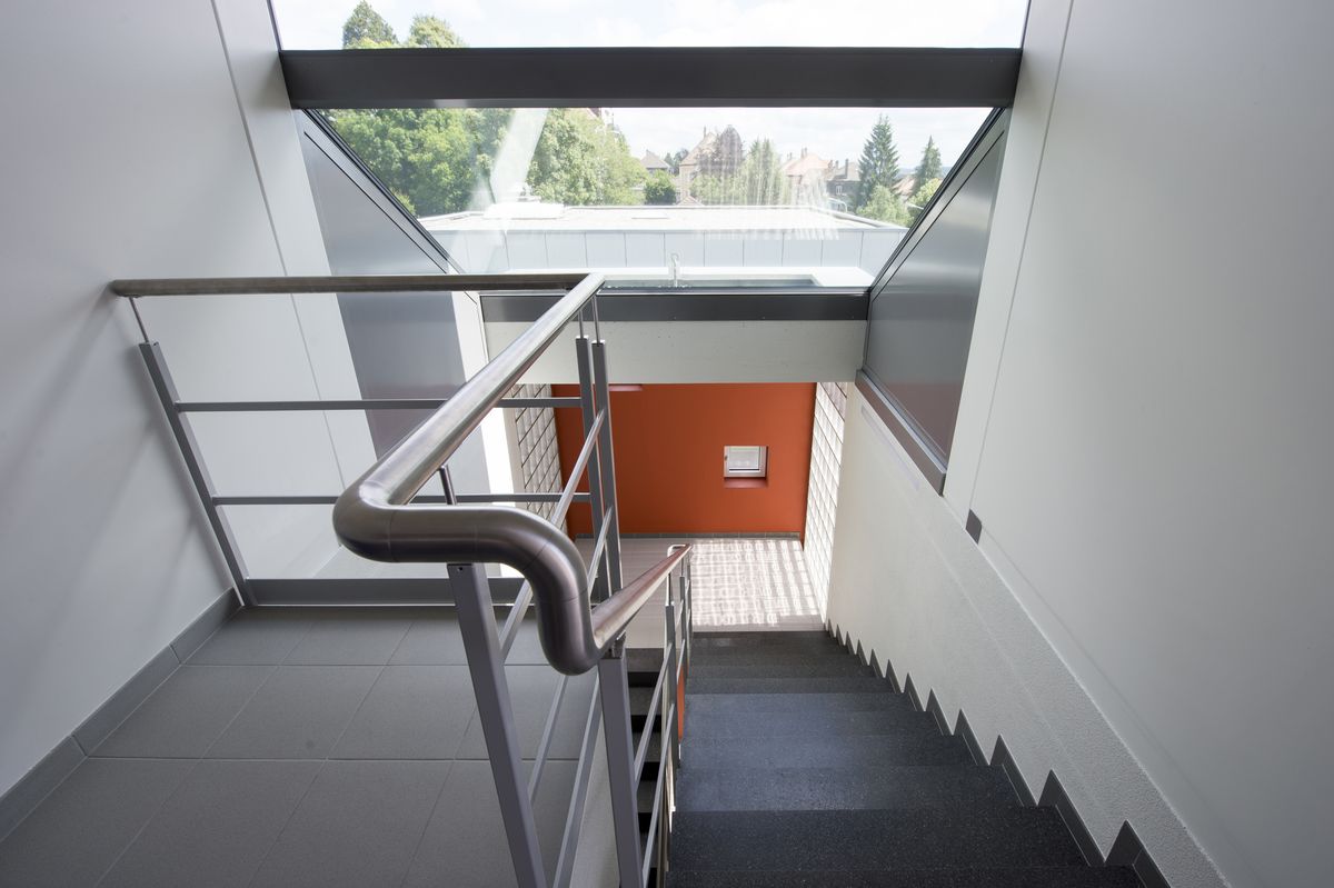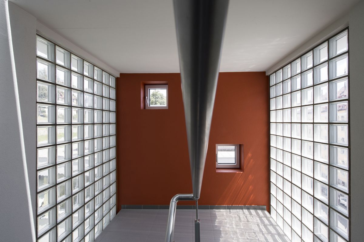 Surélévation du bâtiment en attique et de la cage d’escalier avec capteurs solaires photovoltaïques en toiture