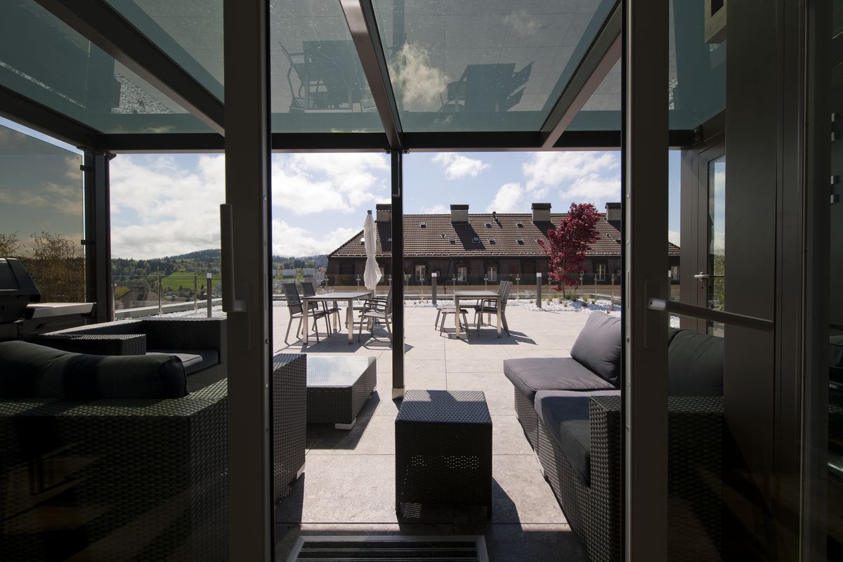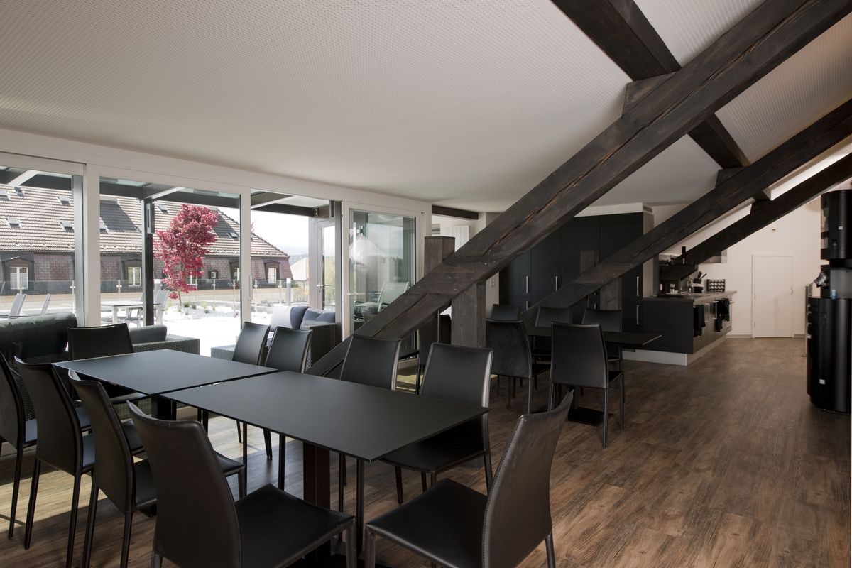 Agrandissement de l'unité de production et création d'une cafétéria avec terrasse en toitureLa Chaux-de-Fonds / NE, 2013